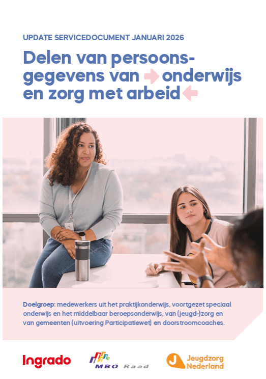 De update is opgesteld door Ingrado, MBO Raad en Jeugdzorg Nederland. De basis is het eerder ontwikkelde stappenplan ‘Informatie delen’. Met de invoering van de Wet van school naar duurzaam werk zijn diverse casussen en grondslagen gewijzigd, wat reden was voor een volledige herziening Het servicedocument helpt professionals om zorgvuldig, transparant en proportioneel met persoonsgegevens van jongeren om te gaan.